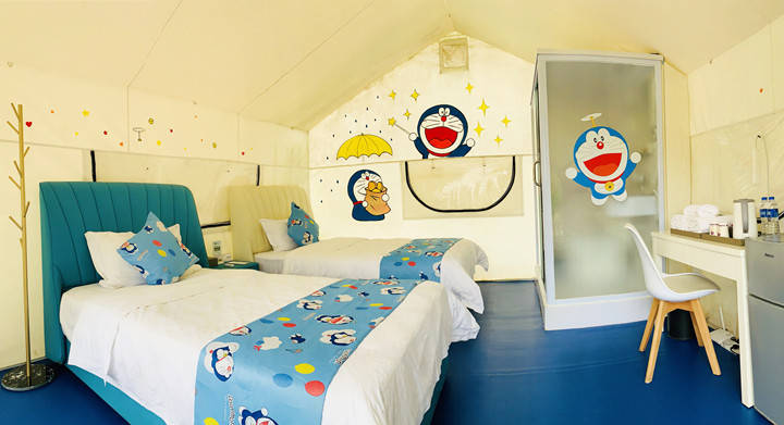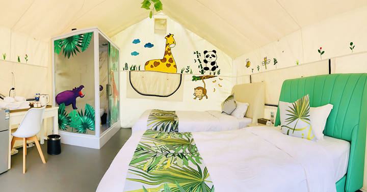 内部不同主题的布置充满童趣,空调、冰箱、WIFI、独立卫浴,齐全的配备让露营小白也可以轻松出游。