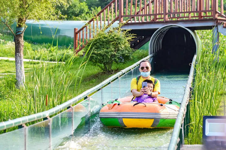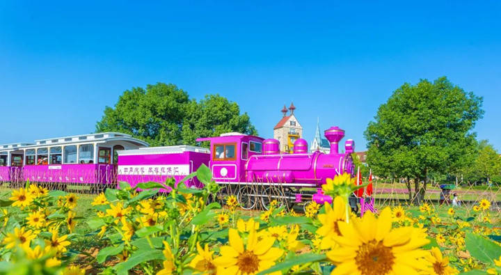 乘粉红小火车畅游花海,在萌宠乐园与小动物互动,到市民农园采摘园体验沉浸式乡村生活。景鸿游乐园里还有摩天轮、高空玻璃漂流、玻璃天桥、激光战船等游乐项目,还可以乘坐直升机从高空俯瞰花海。