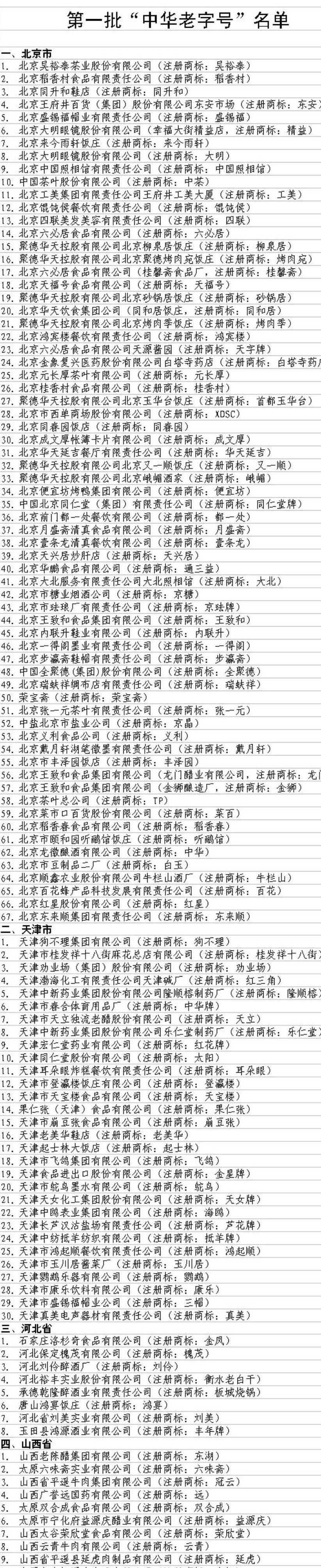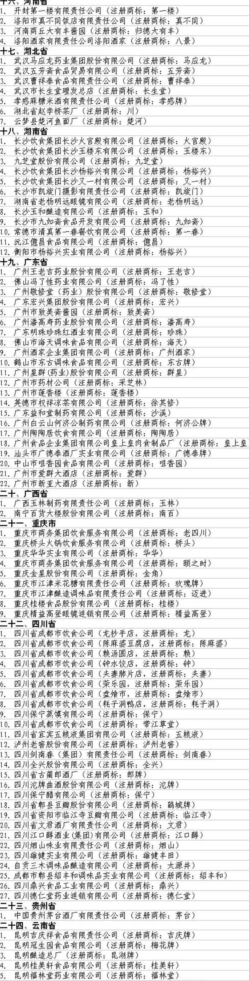同期的还有许多知名的其他“中华老字号”,基本上涵盖了全国各个地方了。