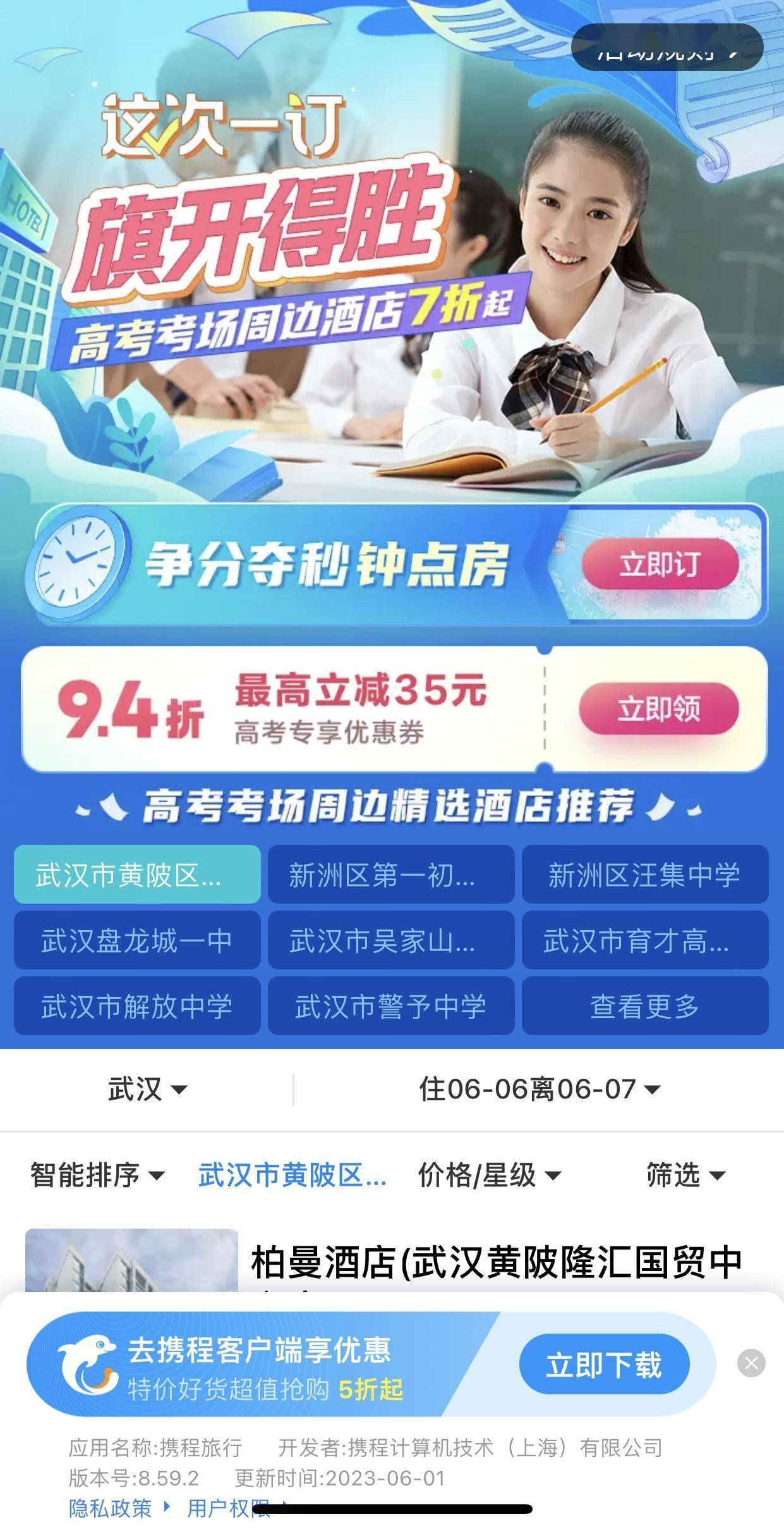 武汉市高考考点周边3公里酒店预订量同比增长134%
