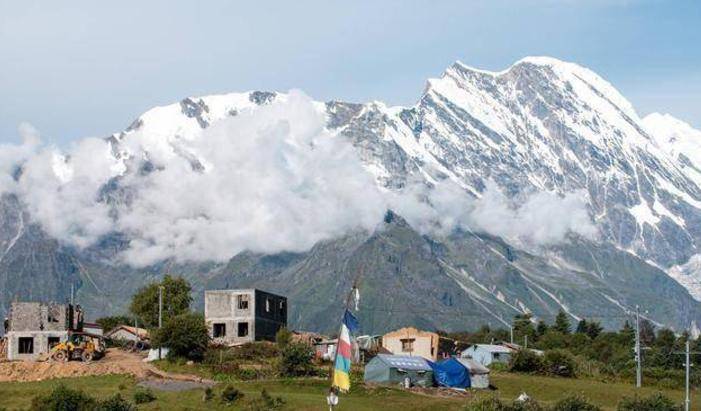 既然在吉隆县城对面,应该是一个靠近边境的村子。在这里你会看到建在山坡上的房屋和蜿蜒的乡间小路。