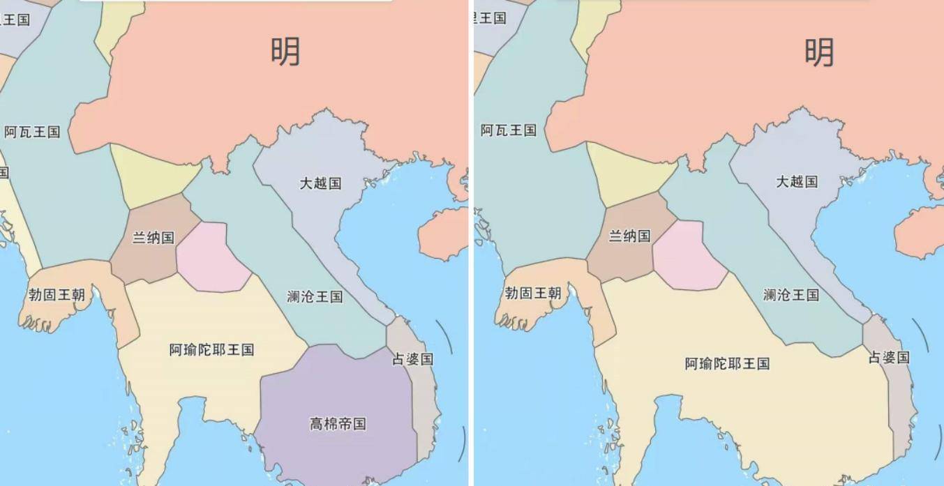 ▲15世纪中叶,暹罗的阿瑜陀耶王朝一度吞并吴哥王朝(高棉帝国)