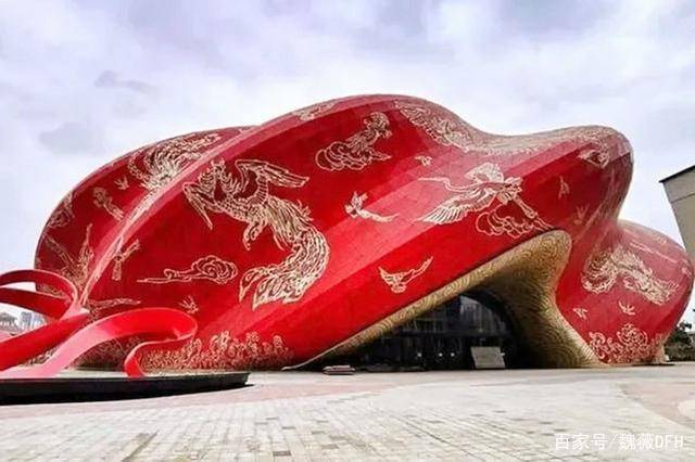 这座建筑就是广州融创大剧院,位于广州市花都区。该建筑是广州融创文旅城的重要组成部分。这个建筑的设计灵感来自古代的丝绸。这一切的出发点并没有错。但是该建筑的形象不被人们所认可,甚至被选为2022年国外10大最丑陋的建筑物。
