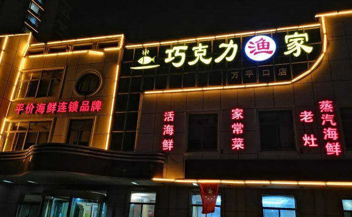 巧克力渔家,一家本地人常去吃的海鲜餐厅,环境是白青灰色偏冷调的装修风格,近百种菜品,活海鲜是特色,也是开店之本。