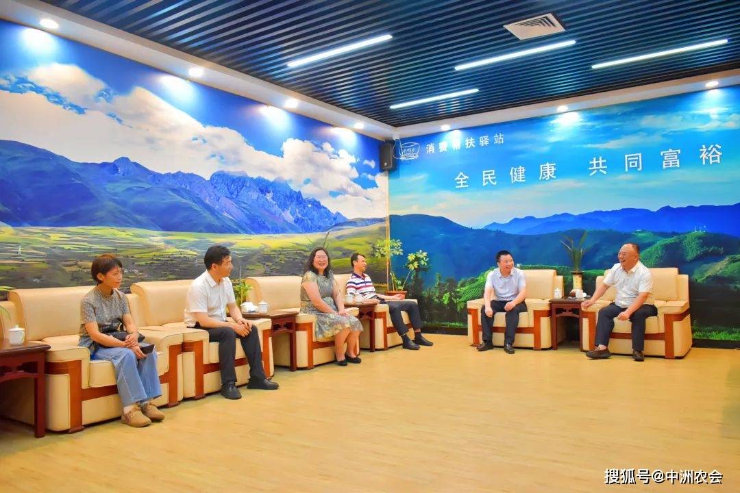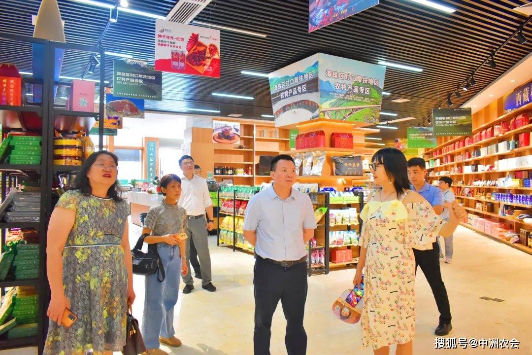 蓝宗耿一行莅临中洲农会后,参观了展厅内的各类农产品,并听取了袁野董事长对中洲农会发展历程和运营销售情况的介绍。