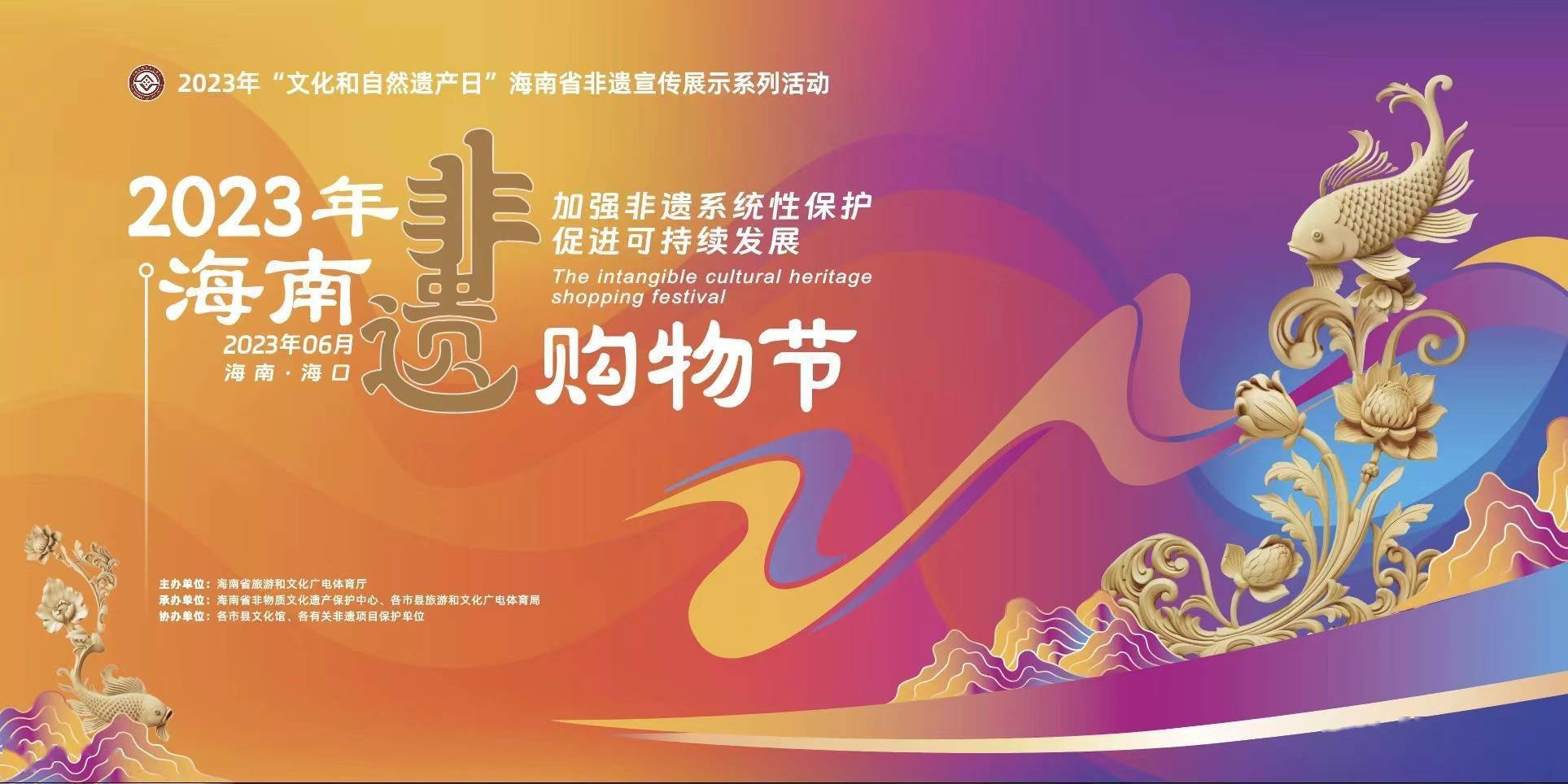 由海南省旅游和文化广电体育厅主办的“加强非遗系统性保护 促进可持续发展”2023年海南非遗购物节活动将于6月3日16:00—22:00在海口市东坡老码头广场火热开市。此次活动围绕助力乡村振兴、弘扬中华优秀传统文化,推动非物质文化遗产保护成果惠及更多人民群众来开展。