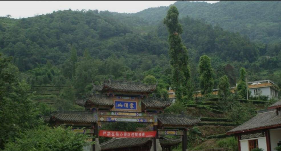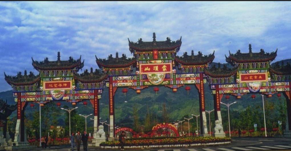 或许是因为这样的经历导致我的心里面出现了阴影,此番来到蒙顶山游玩让我对于天气的好坏看的格外重要。在我还没进门的时候,我便看到了一个朱红色的大门建筑,上面还有一块匾用小篆书写着蒙顶山二字,看上去还挺有中国风的嘛!