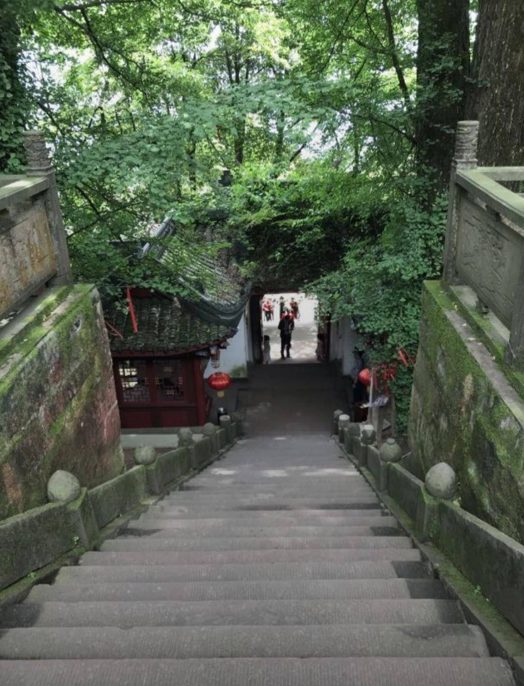在这里登山你可以有三种路线选择,最轻松的自然是乘坐索道直接到达半山腰的天盖寺了;最需体力的是走右边靠近索道的山路,在茶园中穿梭,登天梯直上索道上站(天盖寺);折中的传统路线就是从“世界茶源”石碑的左侧登山,走“之”字型登山石梯道,在密林中穿行,经过甘露寺等景点缓缓上山。