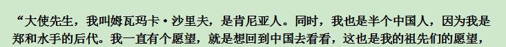 “大使先生,我叫姆瓦玛卡·沙里夫...是郑和水手的后代。”