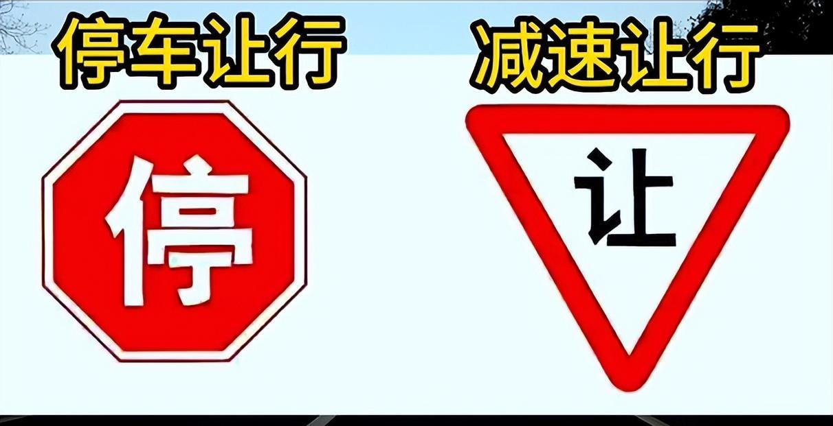 第三组,左边是停车让行,右边是减速让行,从字面就很好理解,左边这个需要停车观察,确认没有来车后才能开过去,右边这个就不需要停车。