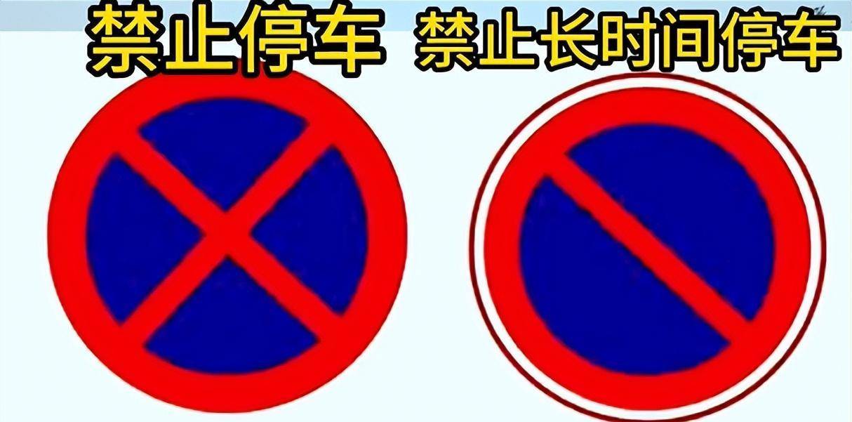第六组、左边是禁止停车,临时停车都不行。右边是禁止长时间停车,也就是可以临时停车,一般临时停车在5分钟之内,车子不能熄火,驾驶员不能离开车子。