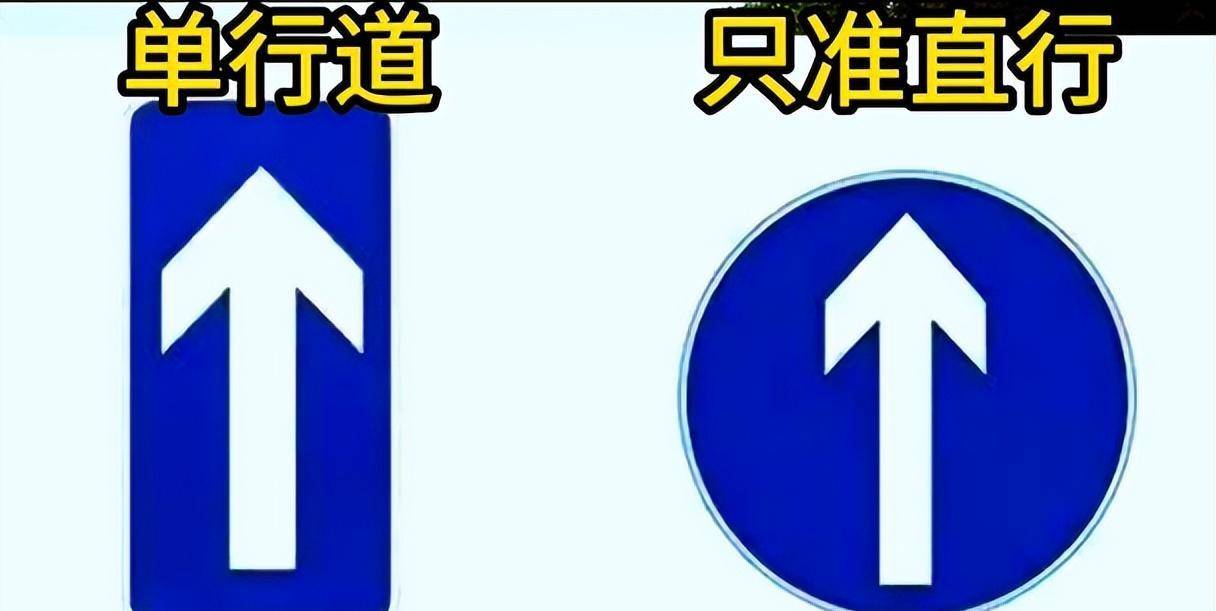 第五组、左边这个是单行道,右边这个是只准直行。一个方框,一个圆形。单行道的意思是只能往一个方向行驶,只准直行就表示不能转弯掉头。