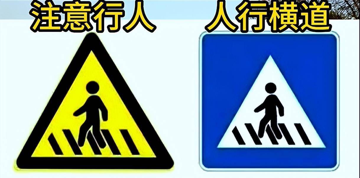 第七组、左边是注意行人,右边是人行横道。注意行人的标牌一般出现在前方行人较多的路段,提醒驾驶员小心驾驶。人行横道也就是斑马线,经过时要减速慢行,礼让行人。