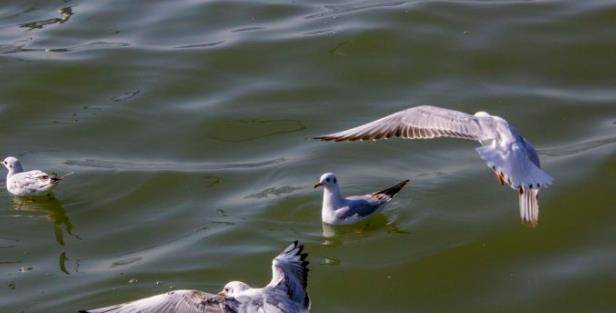 尤为好玩的是,很多红嘴鸥,一点都不怕人,在情侣的头上飞过,偶尔也会成双结对的出现,和游客们热情互动,煞是可爱!