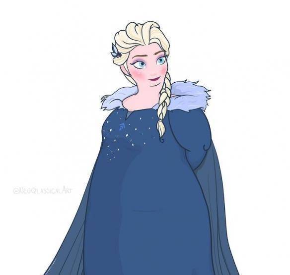 艾莎公主是我们最喜欢的一位公主,她高冷孤独,温柔善良的性格让很多人非常喜欢,假设艾莎公主因为意外原因变胖了,她的气质还会如此的高贵冷清吗?