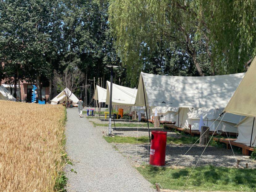 在市集露营地,帐篷、天幕与麦田,仅一路之隔。新京报记者 田杰雄 摄