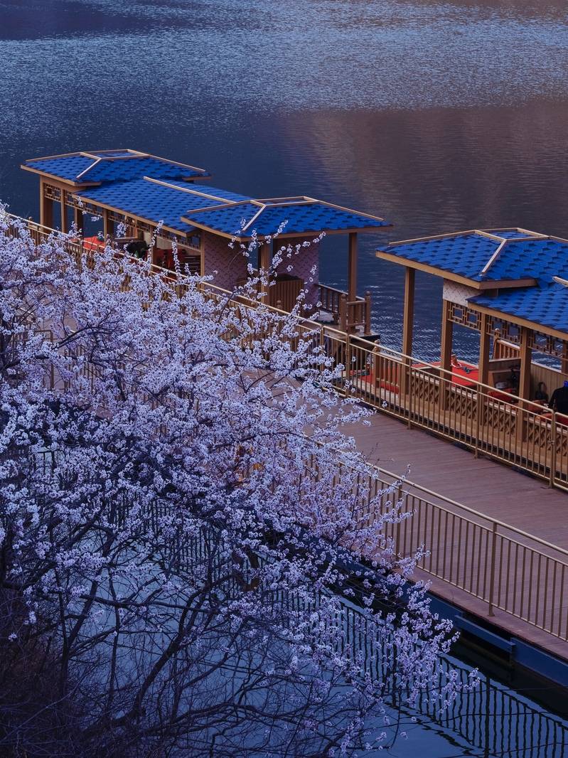 景区内的桃花和杏花错落相间,繁花似锦,芳香醉人。湖边盛开的花蕊,宛如临水梳妆的美丽少女,在春风的吹拂下,楚楚动人,青春荡漾。