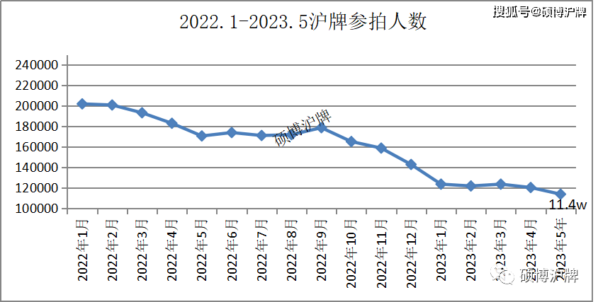 5月私牌参拍人数113722,额度13214张,平均中标率11.6%,最低成交价92400元!