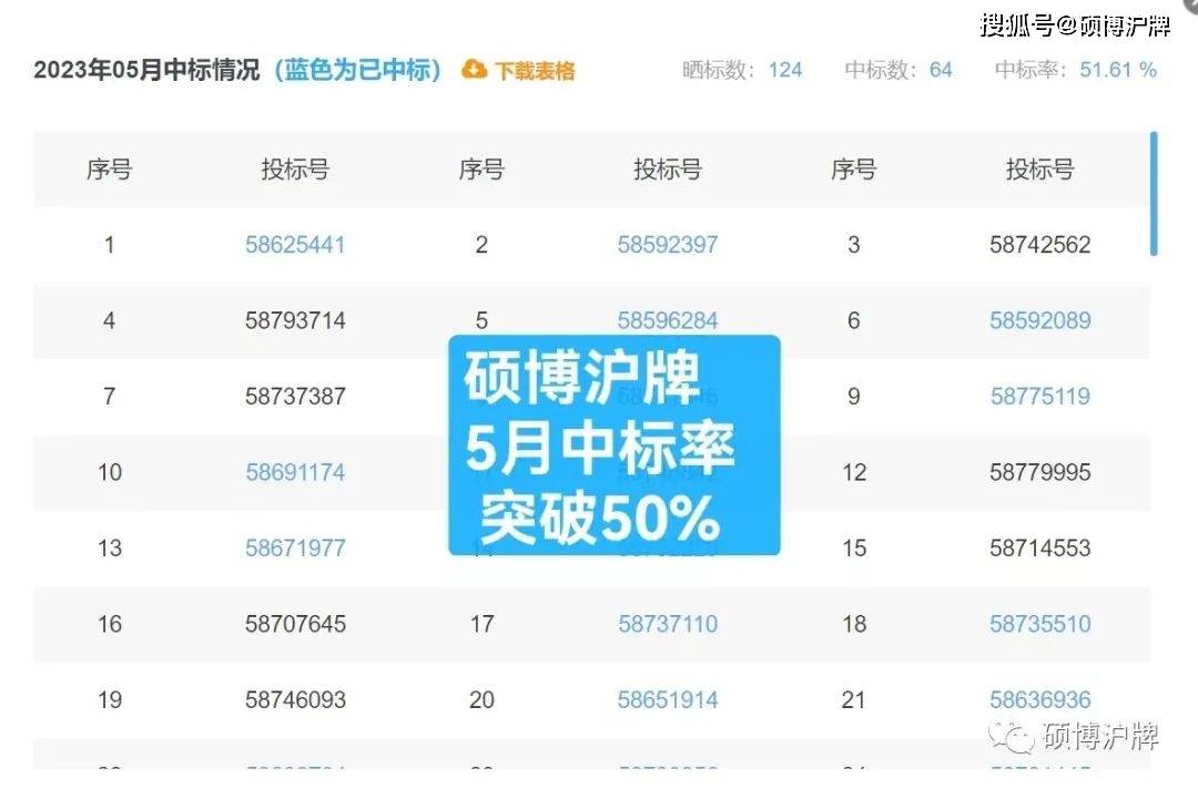 5月团队合计124中64张,中标率突破5成,是全网平均中标率的近5倍,是代拍行业平均中标率的近4倍。
