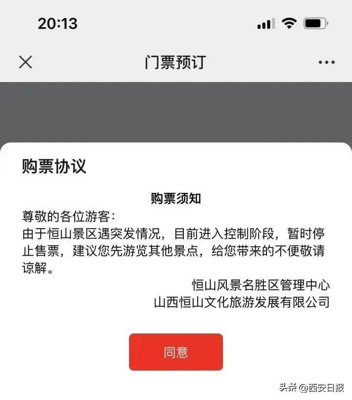 恒山景区已发布购票须知:由于恒山景区遇突发情况,目前进入控制阶段,暂时停止售票。