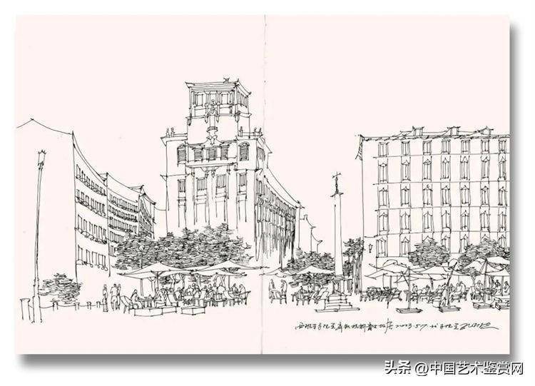 图 孔维克《马德里"英百商场"外即景》圆珠笔