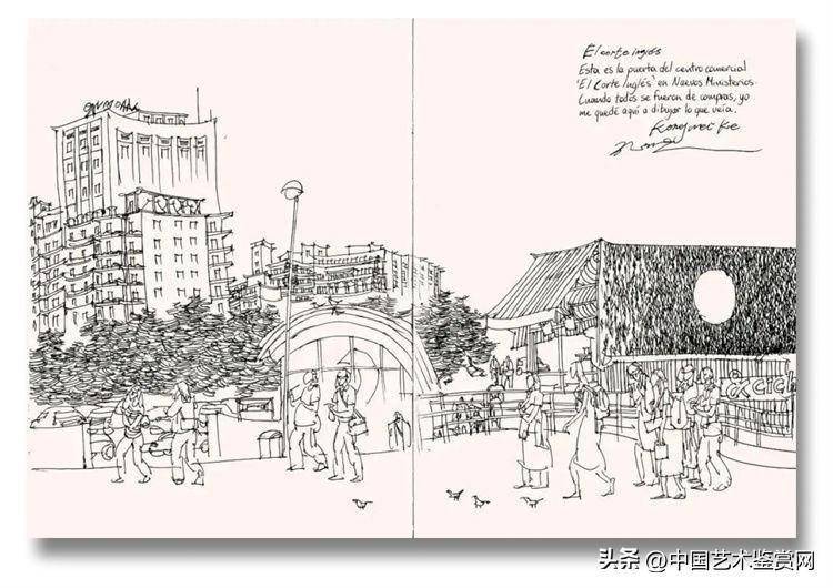 图 孔维克《马德里"英百商场"购物人》钢笔