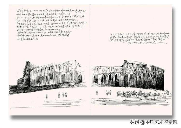 图 孔维克《罗马斗兽场的凯旋门》钢笔
