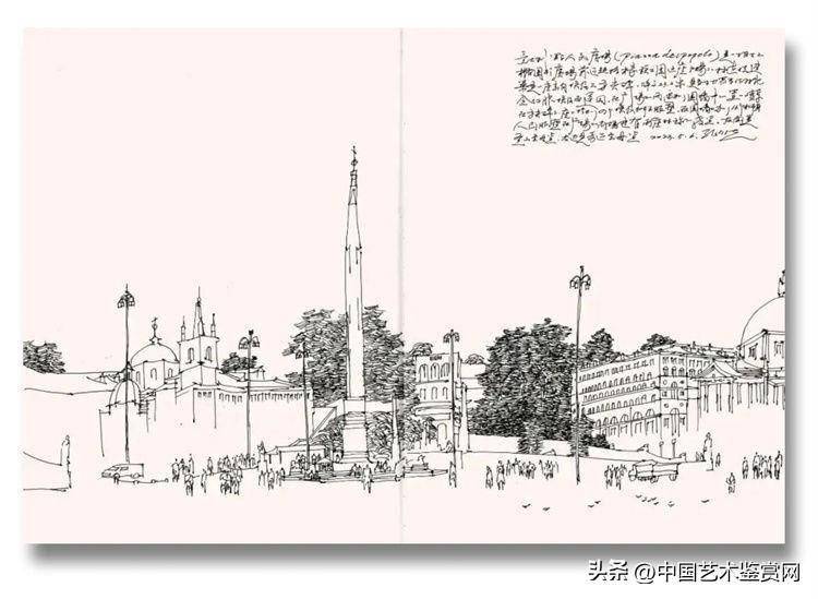 图 孔维克《罗马老店罗摩诺雷蒙前的露天摊》钢笔
