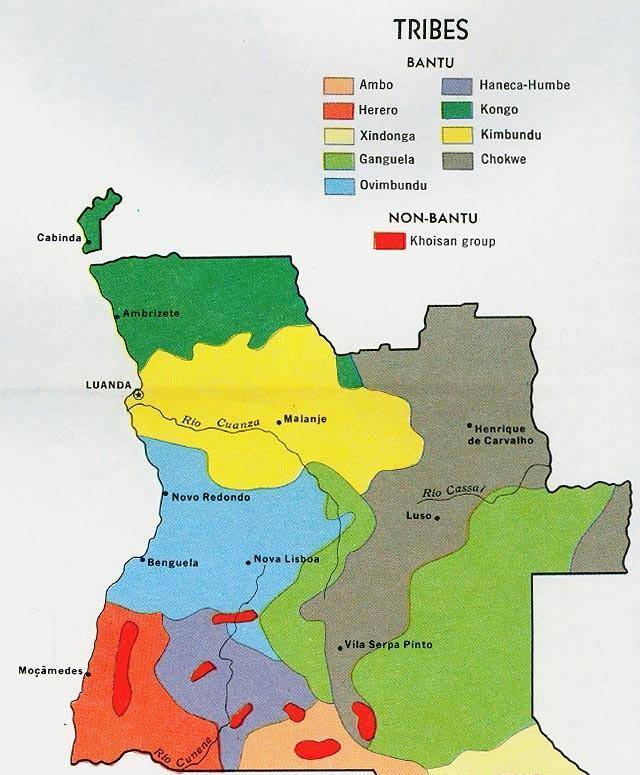 安哥拉位于西非地区,在历史上安哥拉的不同部分曾经分别被刚果帝国、恩东戈、马坦巴和隆达等不同政权统治过,所以在安哥拉的不同地区,也形成了奥文本杜、安本杜和巴刚果等几个主要民族。