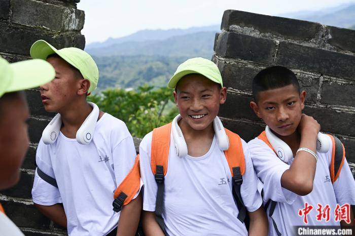 玉树少年们在长城合影。中新社 田雨昊 摄