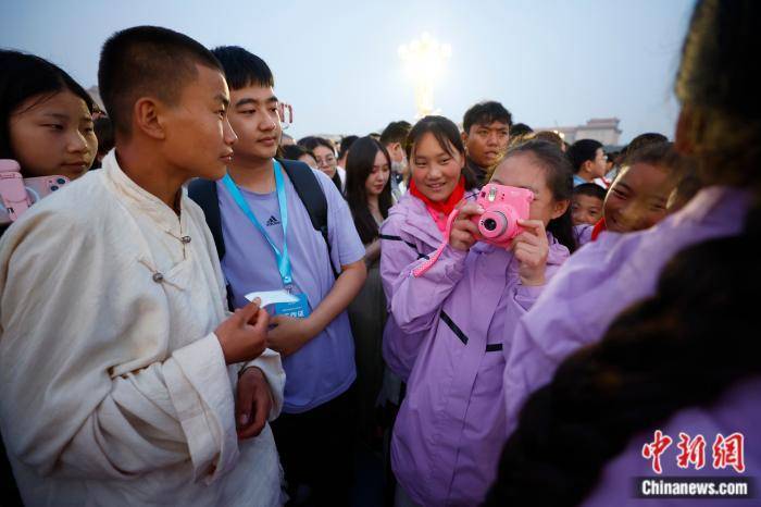 天安门的猎猎红旗下,14岁的电周松保站得笔直。“我想当兵,因为军人可以保家卫国。”他示意拍照的人,自己想和身后的兵哥哥同框。