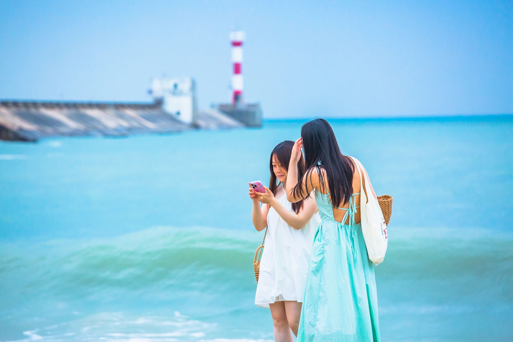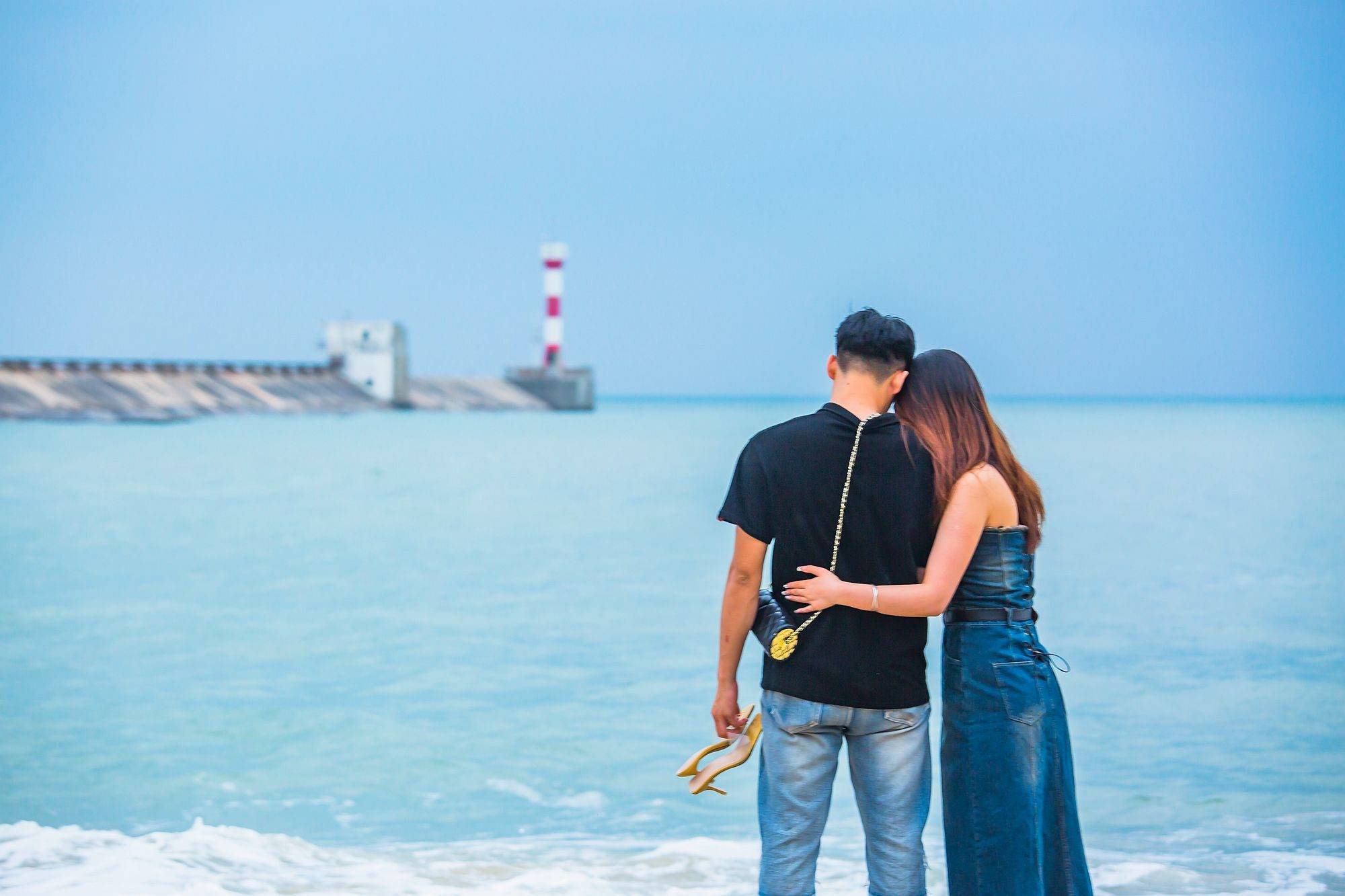 虽然知名度比银滩稍逊一筹,这里的海景却丝毫不差,纯净的tiffany蓝、长长的堤岸和红白灯塔搭配起来极上镜,拍出的照片浪漫气十足。