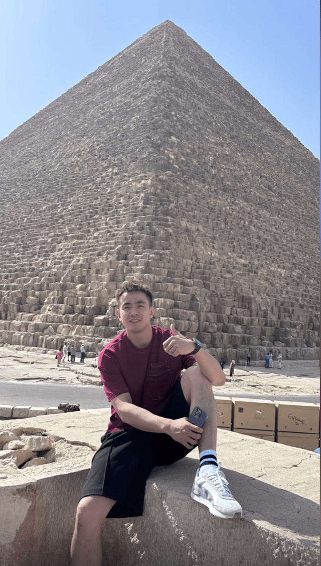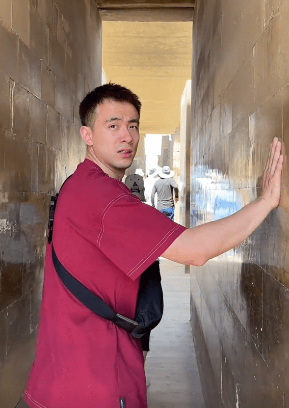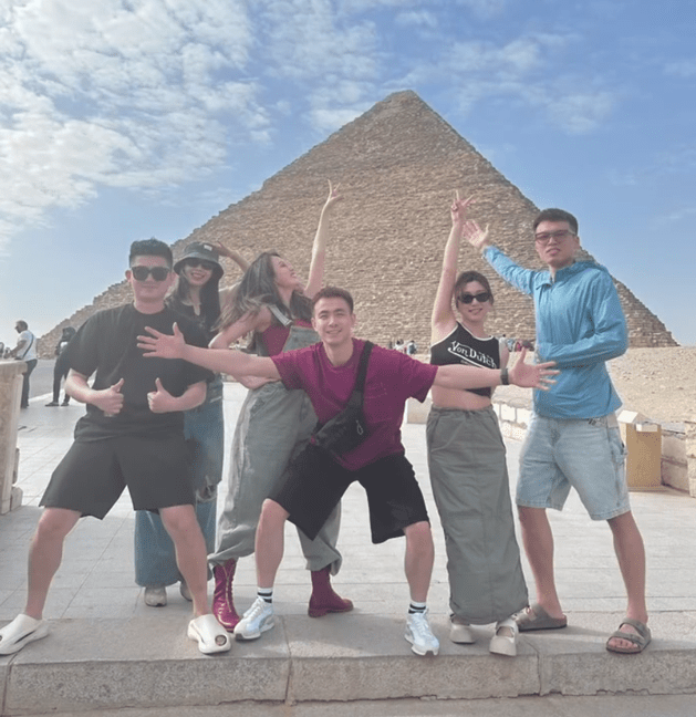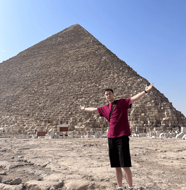 辽宁队总冠军后卫赵继伟带着妻子来到了埃及旅游 ,打卡了著名的金字塔,大秀恩爱。