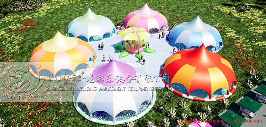 除了上面一点外,小编推荐它的原因还是因为它太漂亮,太吸睛!这款遮阳水池乐园一个可以成园,三五个也可以成园,当把几个五颜六色的遮阳水池摆放在一起,你看它像不像一道亮丽的风景线?远看就像一个个驻扎在那里的帐篷一样,走进去才发现里面竟然还隐藏着这样一个清凉又好玩的游乐场!漂亮的东西总能激发人们的兴致,忍不住多看几眼,甚至还会引起人们前去一探究竟的想法。这也是这款遮阳水池乐园的一大魅力所在!也是小编推荐给大家的主要原因之一,当你摆上这么一款遮阳水池乐园经营时,还愁没人气?