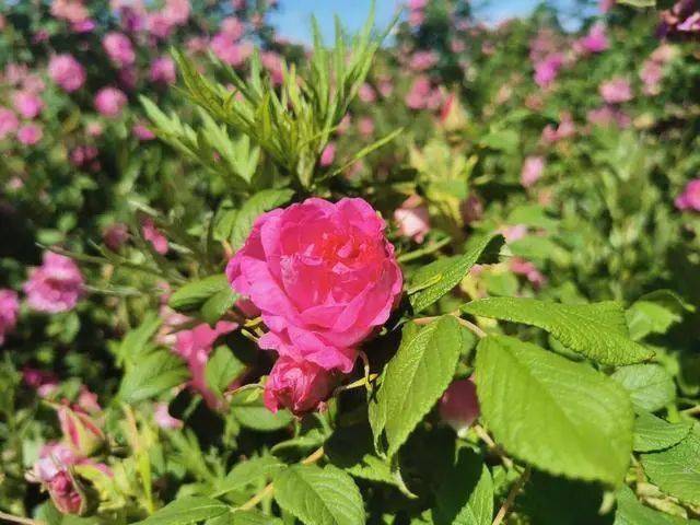 这里土壤肥沃、气候湿润、光照充足、昼夜温差大,是玫瑰生长的最佳环境。几十万株丰花一号食用玫瑰,既能观赏还可食用,每年花开之时便是最火爆的网红打卡之地。