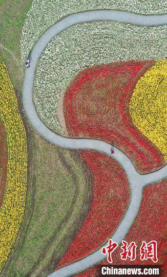 游客在潞村附近的多彩花田中游览。 王刚 摄