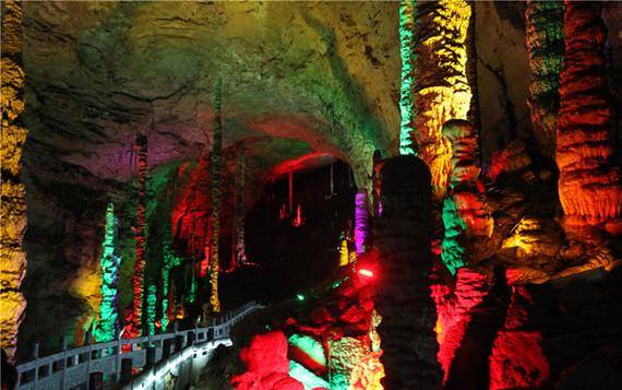 黄龙洞现已探明的洞底总面积10万平方米,全长7.5公里,垂直高度140米。所以千万不要低估它,这个没有2个多小时是走不完哒。简直是别有洞天,里面楼梯盘旋,地形复杂。好在景点都有配免费的讲解员,一定要跟紧不要擅自离队。不然很可能绕弯路找不到北哦。
