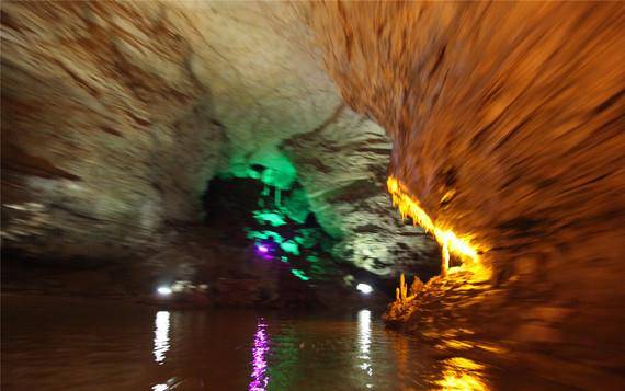 个人强烈推荐体验下坐船游览。这个含在门票内,不需要另外收费,相当值得。因为分旱洞和水洞。洞内有一个水库、两条阴河、三条地下瀑布、四个水潭、十三个大厅、九十六条游廊。