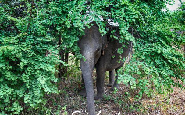 瞧着大树下躲着的是啥?正是乌达瓦拉维最常见的动物之一大象!