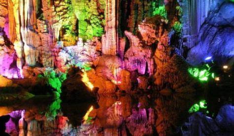 第一个,多彩芙蓉洞,位于重庆武隆县江口镇四千米处的芙蓉江畔,发现于1993年5月,经中国于澳大利亚有关溶洞科研机构两次实地勘测,评价为:“世界奇观,一级洞穴景点”,“一座地下艺术宫殿和洞穴科学博物馆”。芙蓉洞主洞长2700米,总面积3.7万平方米,其中的“辉煌大厅”面积达到1.1万平方米,最为壮观。洞内钟乳石类型几乎包括了世界各类洞穴近30余个种类的沉积特征,在灯光的照耀下色彩斑斓,辉煌壮丽。