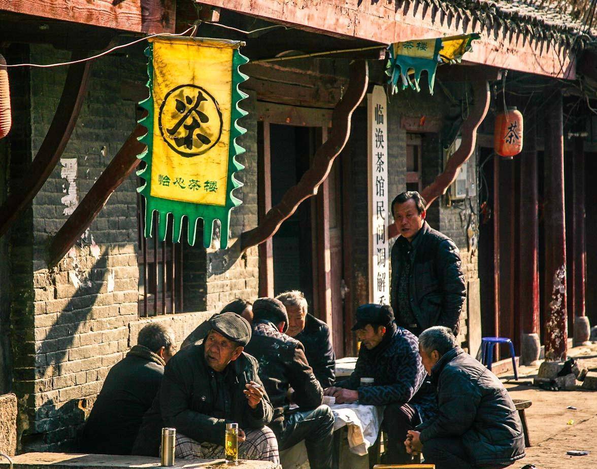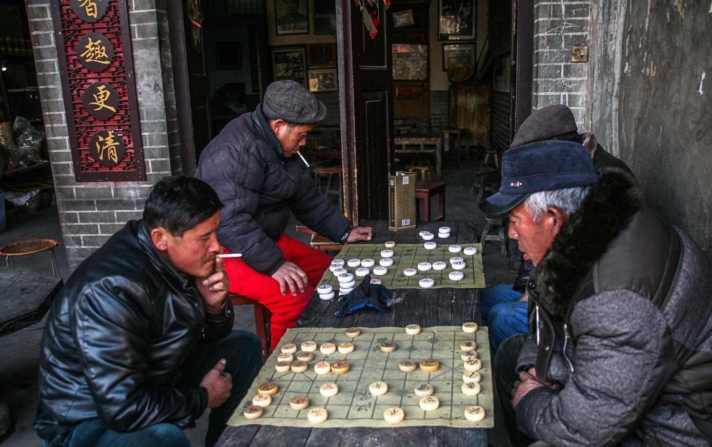 图中是安徽淮北临涣古镇上的村民每天到茶馆下棋休闲,他们自带茶杯,花2块钱就可以喝一上午临涣老茶馆里的特色棒棒茶。