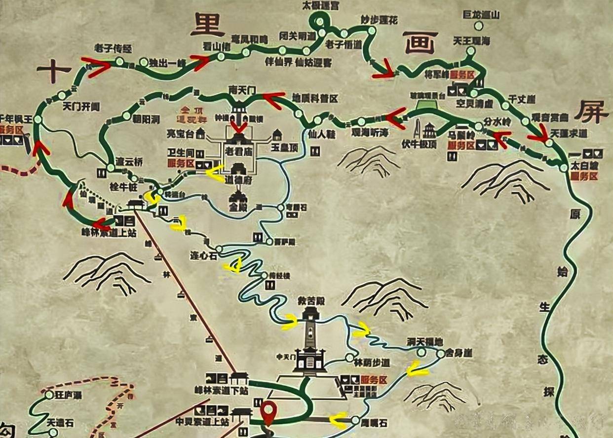 沿着悬空索道,经过青云峰、一线天、通天峡、枫叶皇后、十里画屏,直达伏牛山主峰,再前行20分钟到达金顶。领略这如仙境般的地方,作为西游凌霄宫、金顶、老君观、玉皇顶等的驿站非常壮观!