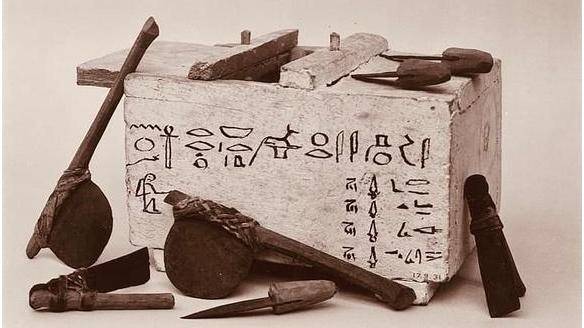 看罢这几样工具的当代游客,心里都会升起一个疑问,这个古埃及木匠的工具箱子中,为何没有锯子和凿子等工具?