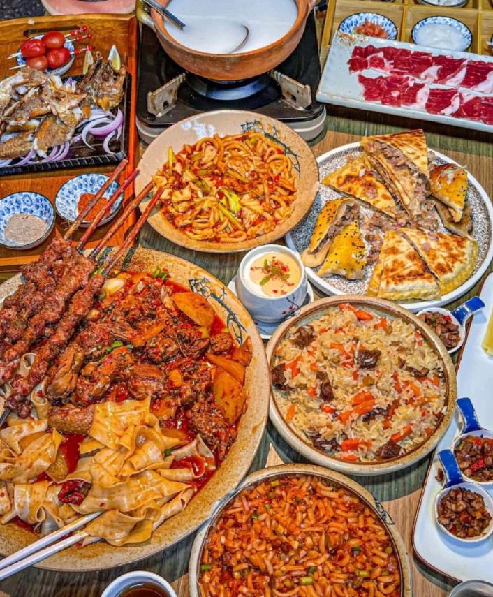 作为一名出色的厨师,小编转向了他的餐车。看到这些美食,相信“欲罢不能”的不只我一个。新疆鸡大盘、新疆烤羊肉、罗布人烤鱼,新疆各色美食应有尽有。