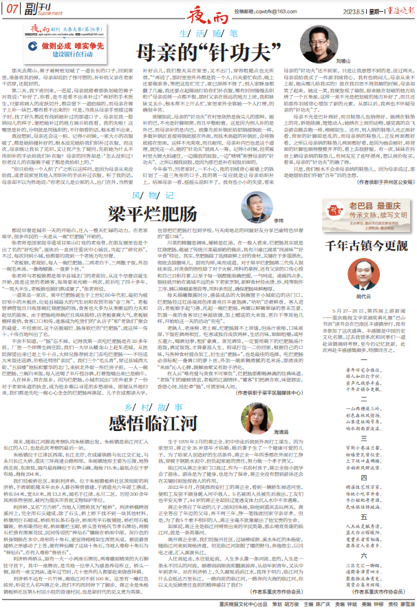离开蒋正全家,我们经振兴社区,过绿柳成荫、溪水朱红的朱杨街,随临江河来到周杨济渡。但见临江河如脱了缰的野马,奔逸绝尘,以闪电之速,汇入滚滚长江。