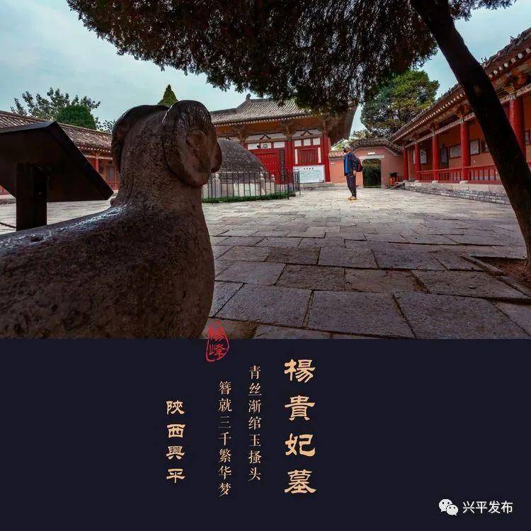 唐杨贵妃墓只是杨贵妃的衣冠冢,位于咸阳,兴平市(西约13公里)。墓呈半球形,冢高约3米,整座墓冢都用青砖包砌,正殿前有一座杨贵妃大理石塑像。这里历代文人曾留下了大量关于唐明皇和杨贵妃爱情故事的诗词,使杨贵妃墓闻名于世。
