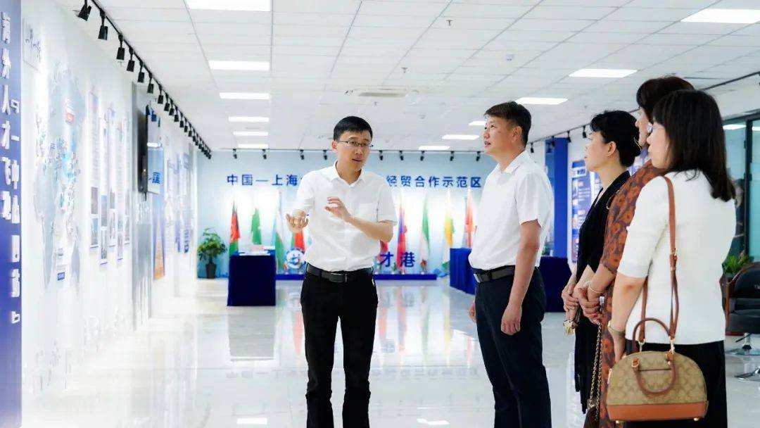 在胧爱集团创始人、董事长蒋公宝的陪同下,胶州市工商联领导及南部非洲山东总商会副会长一行参观了胧爱集团山东分公司及成果展厅,参观过程中蒋总就上合-上海创业港、海外人才飞地、元宇宙等内容进行了详细介绍,葛部长一行充分肯定了胧爱集团的发展思路,对胧爱的工作成果给予了高度赞赏。