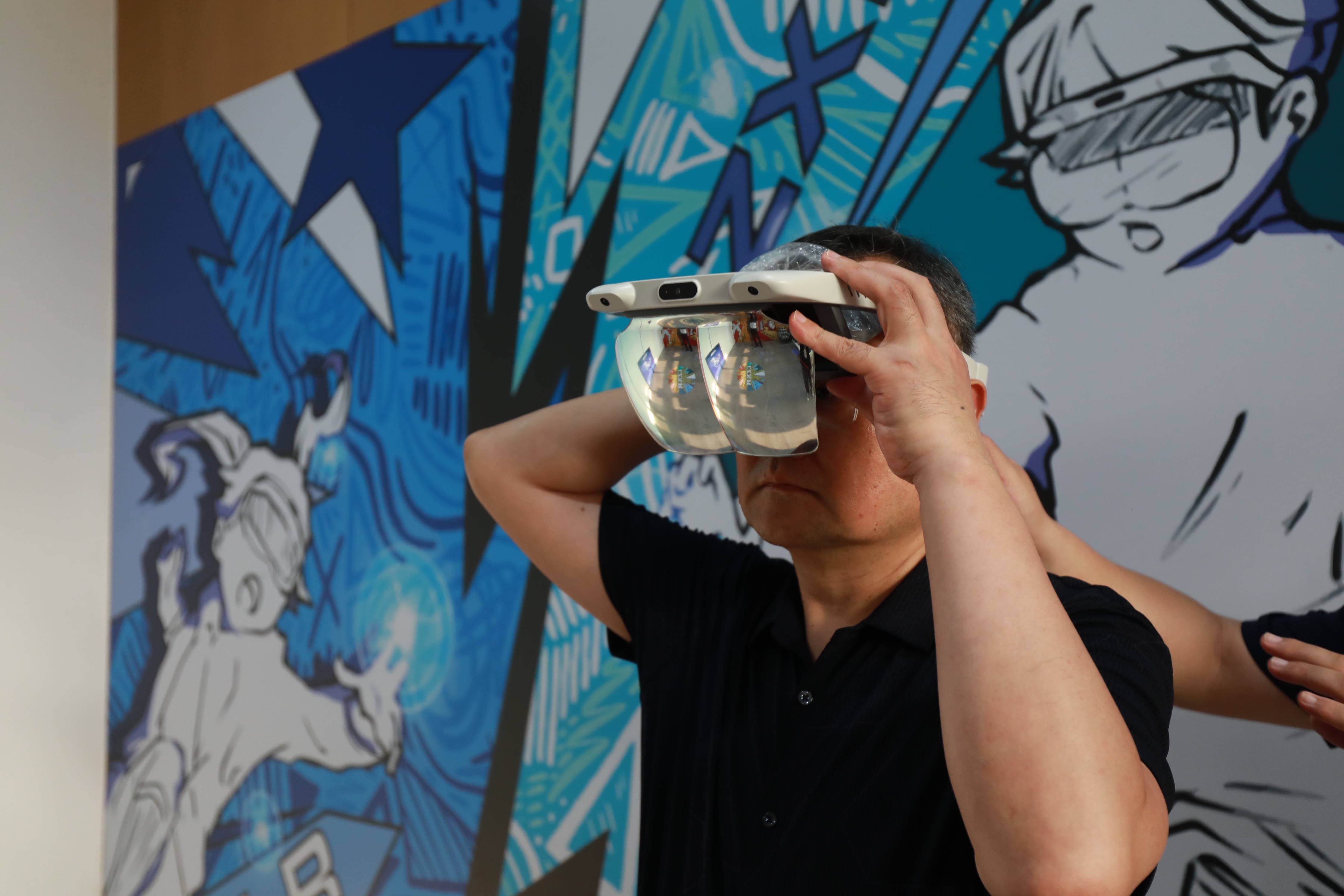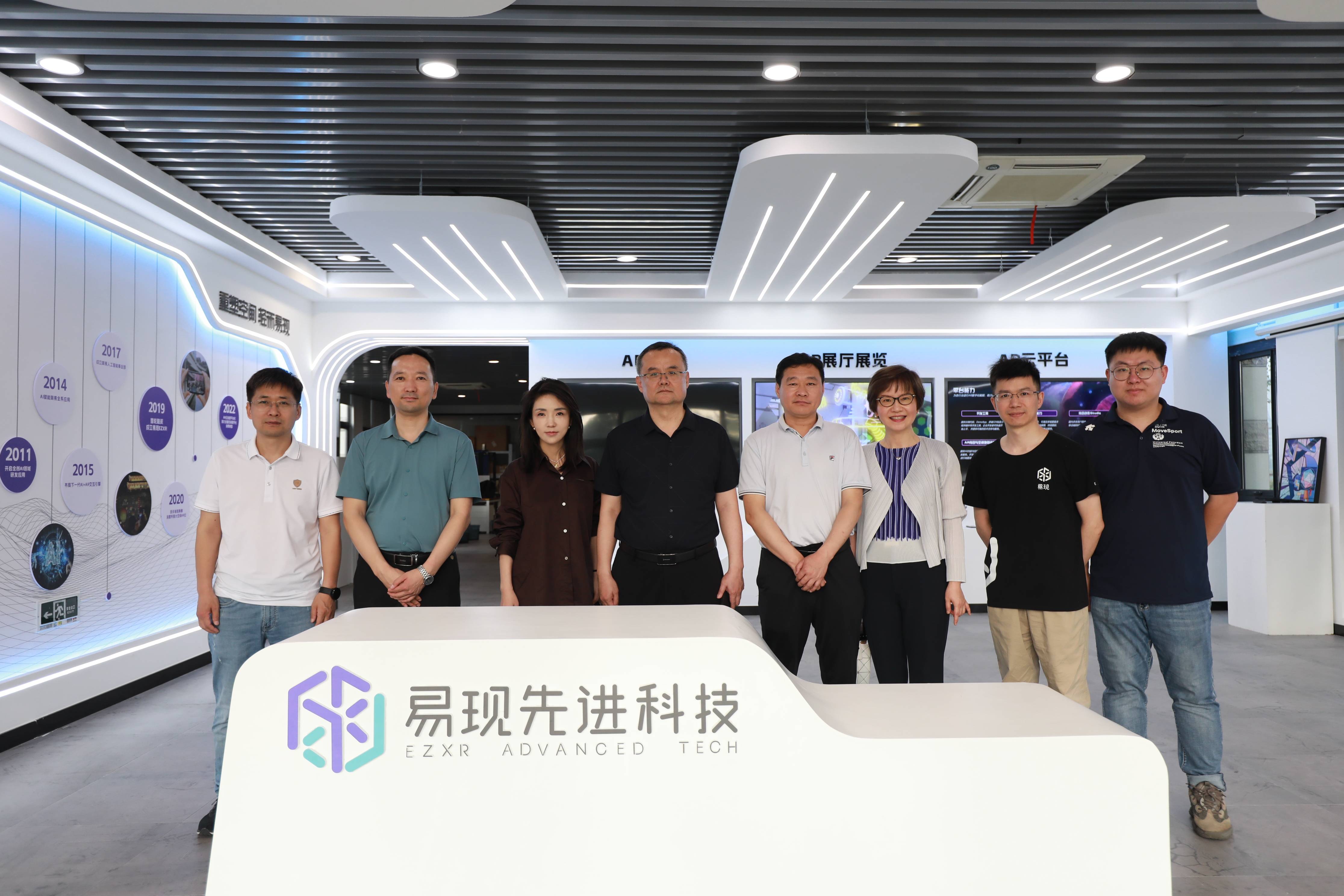 庞道锋一行参观了易现AR科技展厅,对易现最新的技术成果、创新产品和商业应用等进行了深入了解,并体验了易现最新推出的AR-Glasses产品以及AR技术打造的文商旅实景元宇宙、元宇宙展厅展览等相关创新应用。