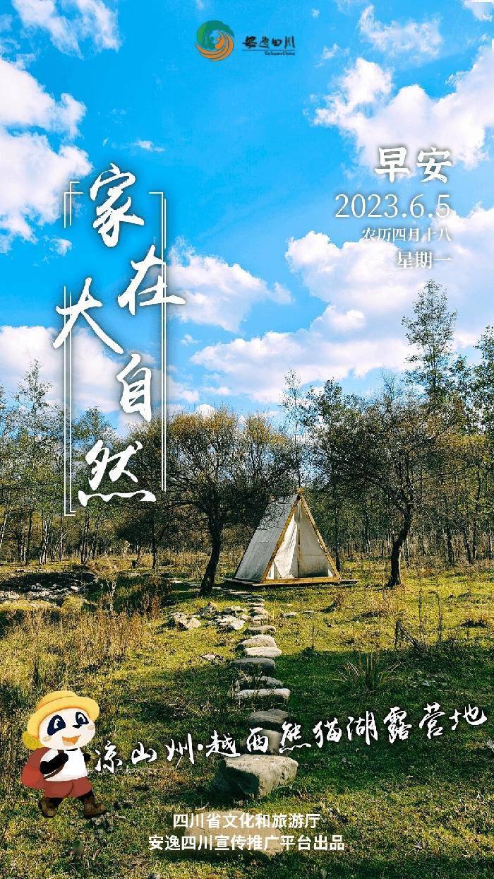 今天安逸四川日历海报带大家走进凉山州越西县熊猫湖露营地,感受“家”在大自然。