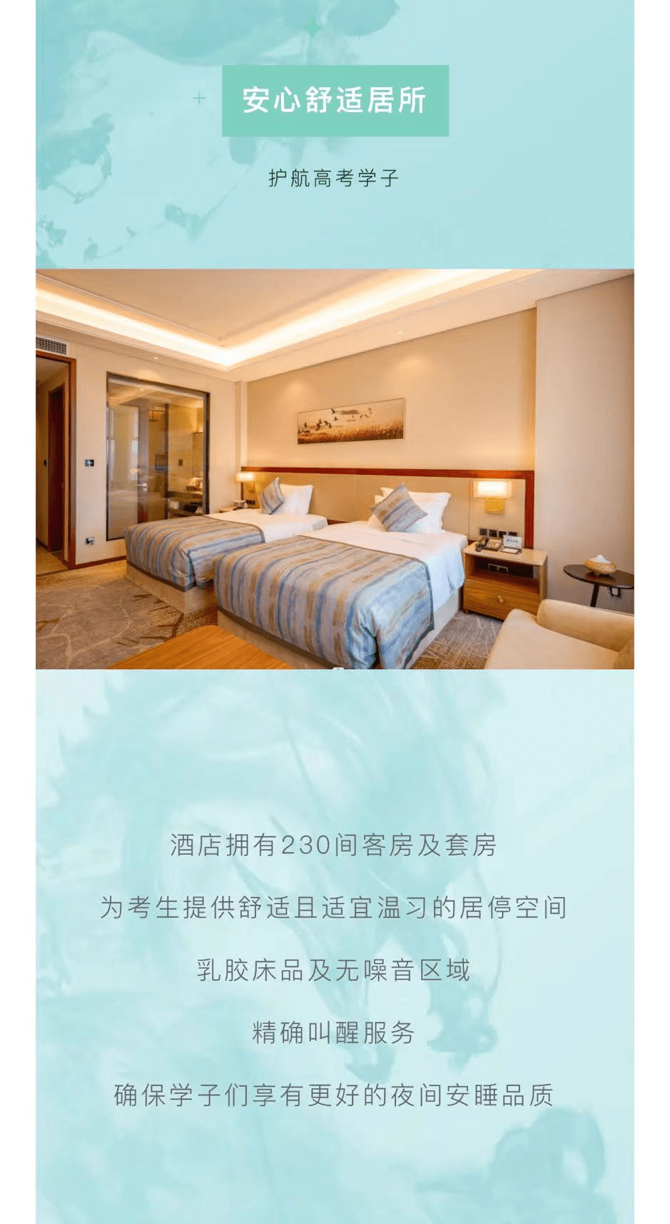 酒店销售部负责人张丽说:“我们的保安团队也做了相应的一些安排措施,包括我们会做24小时的巡楼,来保障我们的学子是在一个安静的、安全的环境下备考。”